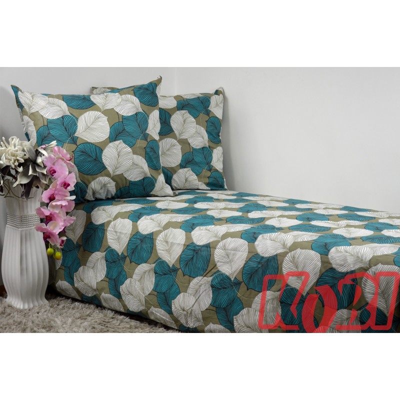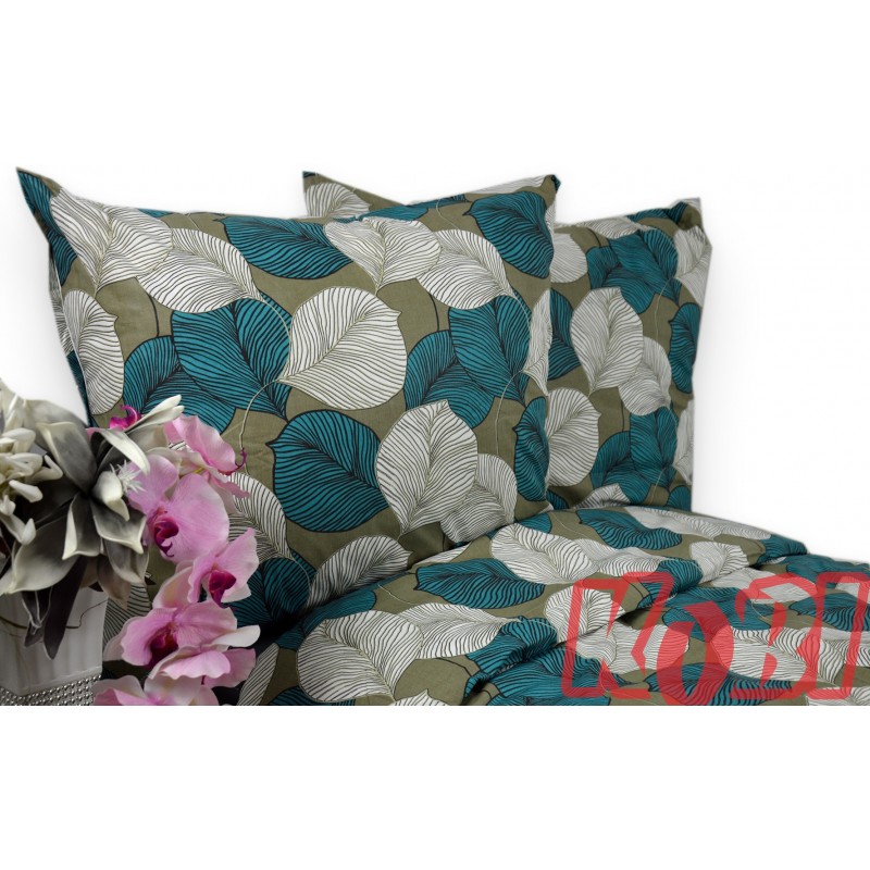 Pościel bawełna 100% rozmiar 140x200 liście biały-turkus 3504w Kobi