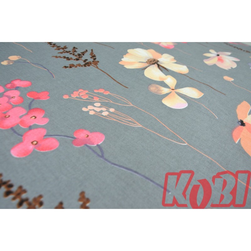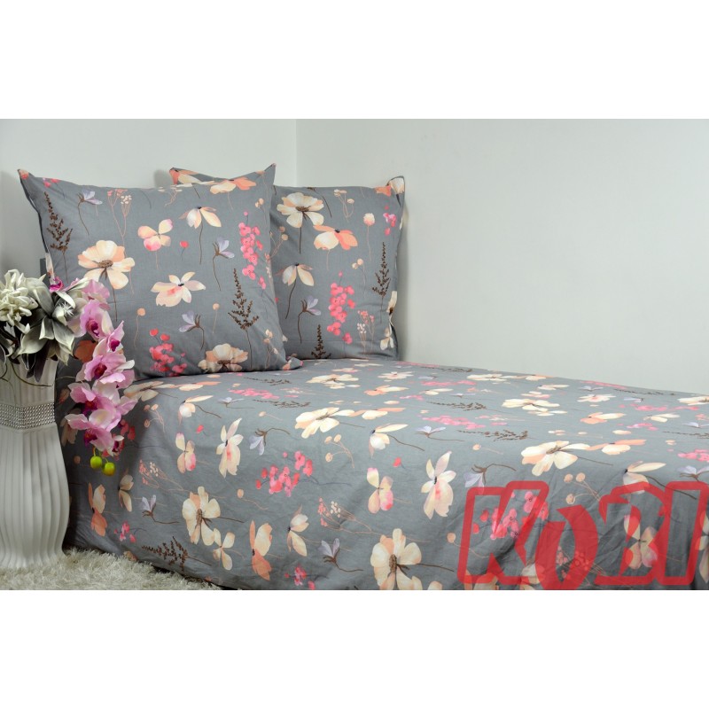 Pościel bawełna 100% rozmiar 140x200 Beżowe kwiaty szare tło 3519w Kobi
