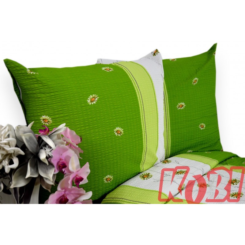 Pościel z kory rozmiar 140x200 zielona stokrotka biały pas 3555w KOBI