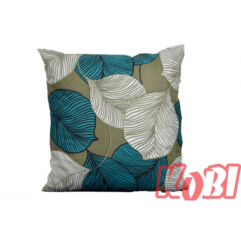 Poszewka bawełniana rozmiar 40x40 Liście biały-turkus 3504 Kobi