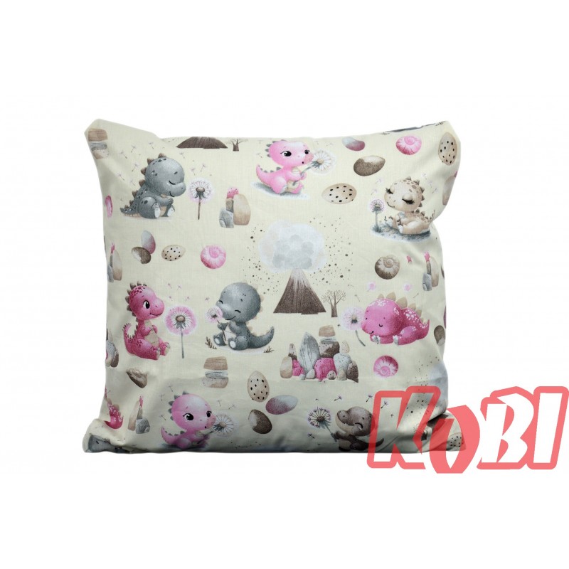 Poszewka bawełniana rozmiar 40x40 małe dinozaury tło krem D90 Kobi