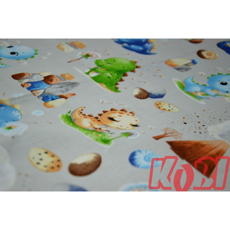 Poszewka bawełniana rozmiar 40x40 małe dinozaury tło szare D92 Kobi