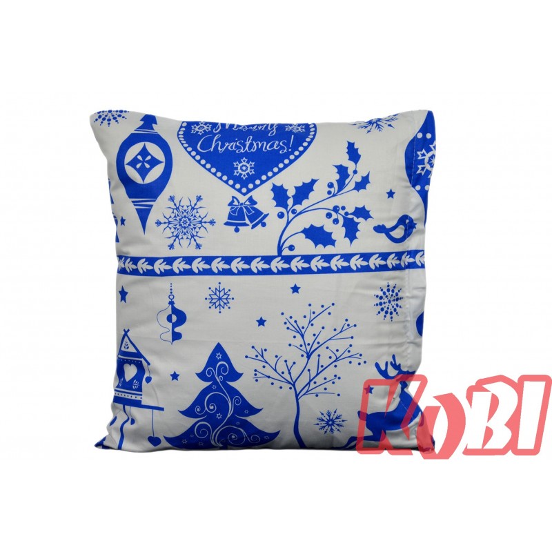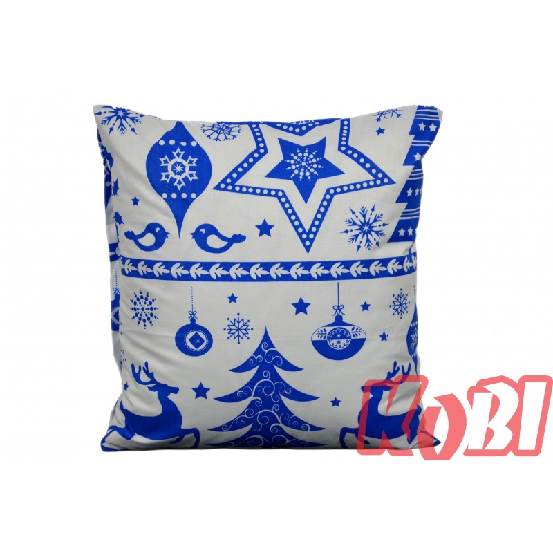 Poszewka bawełniana rozmiar 40x40 świąteczna renifery niebieskie pasy 3524 KOBI