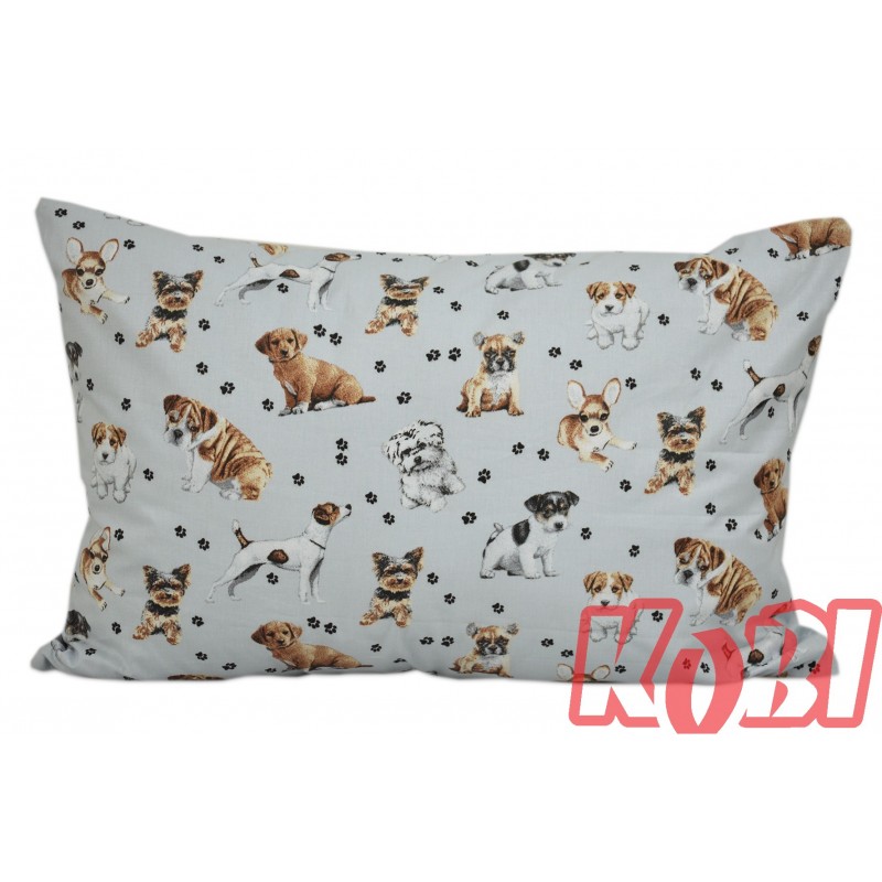 Poszewka bawełniana rozmiar 40x60 pieski szare tło 3226 Kobi