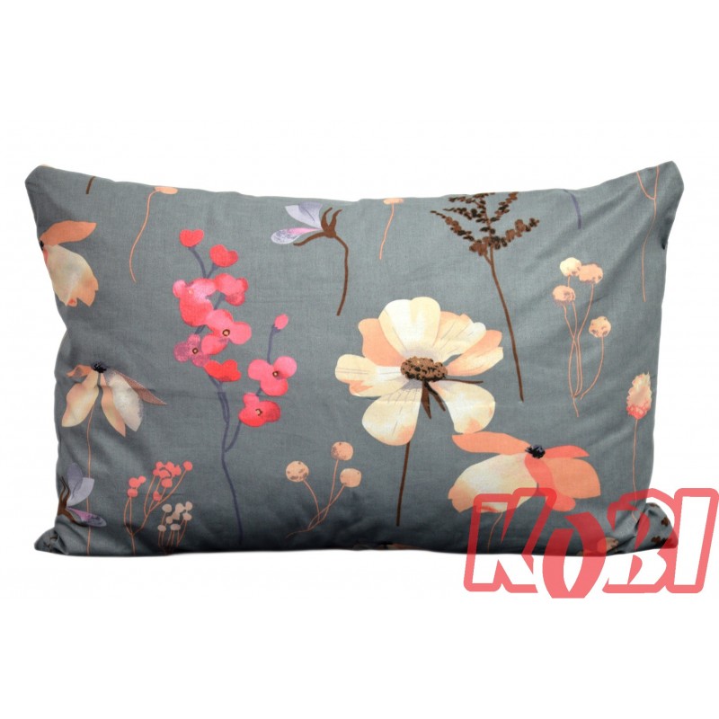 Poszewka bawełniana rozmiar 40x60 Beżowe kwiaty szare tło 3519 Kobi