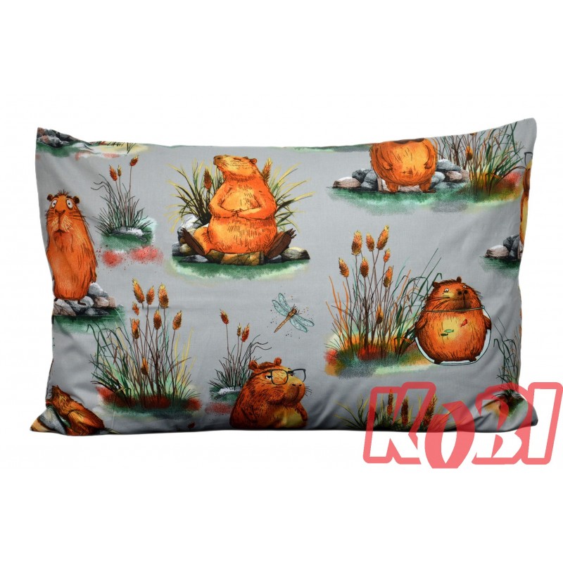 Poszewka bawełniana rozmiar 40x60 Kapibara szare tło 3521 Kobi