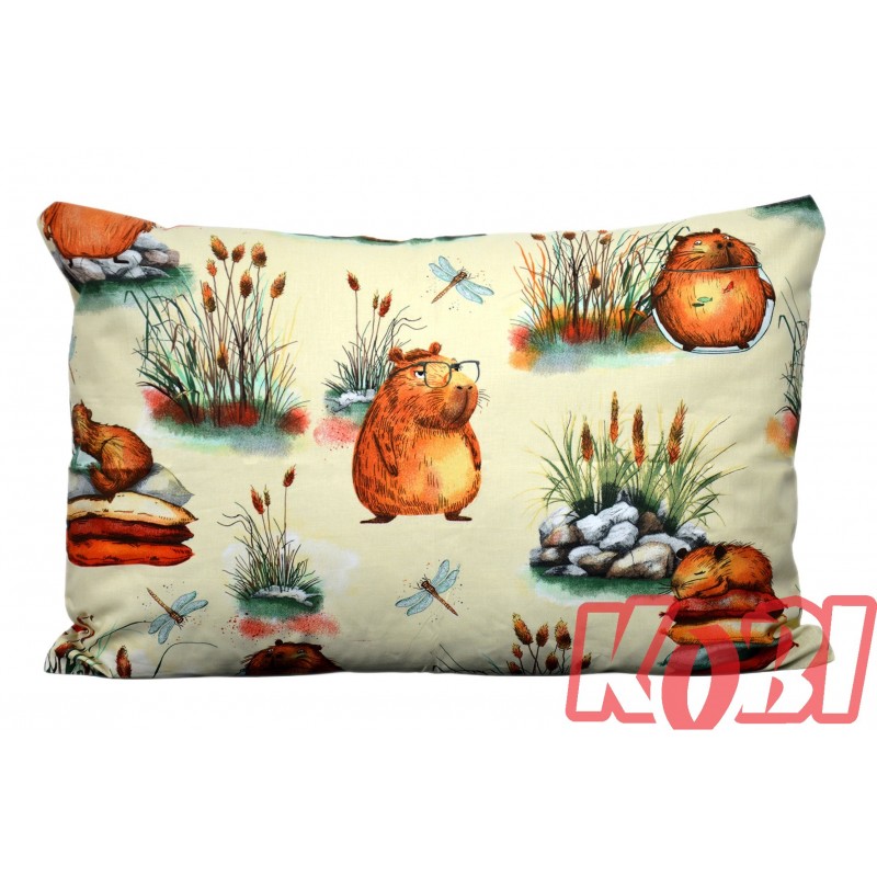 Poszewka bawełniana rozmiar 40x60 Kapibara kremowe tło 3522 Kobi