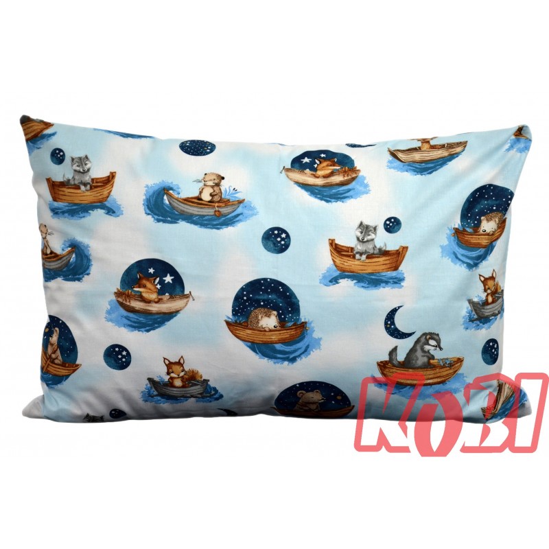 Poszewka bawełniana rozmiar 40x60 Zwierzątka w łodziach nocą D83 Kobi