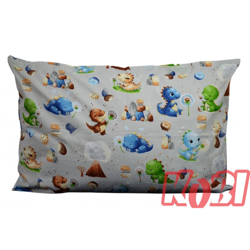 Poszewka bawełniana rozmiar 40x60 Małe dinozaury tło szare D92 Kobi
