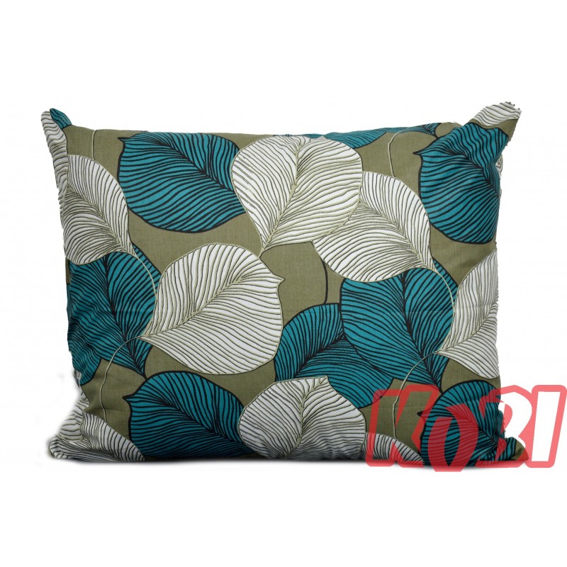 Poszewka bawełniana rozmiar 50x60 Liście biały turkus 3504 Kobi