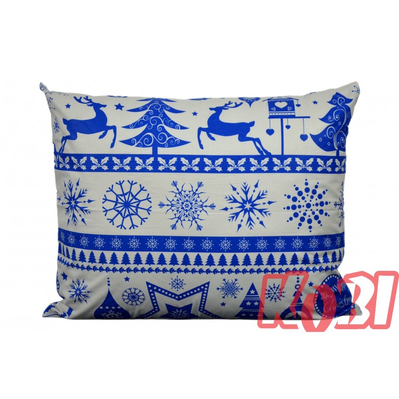 Poszewka bawełniana rozmiar 50x60 świąteczna renifery niebieskie pasy 3524 Kobi