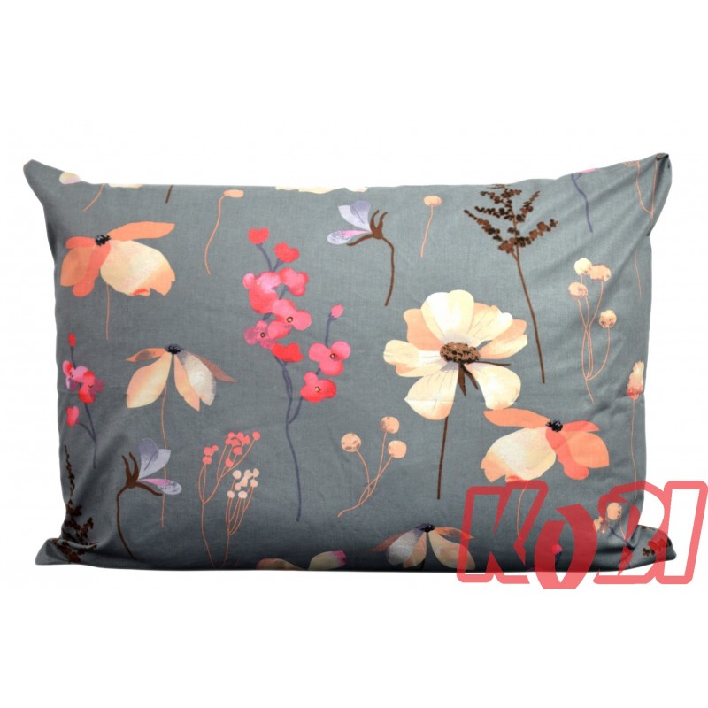 Poszewka bawełniana rozmiar 50x70 Beżowe kwiaty szare tło 3519 Kobi