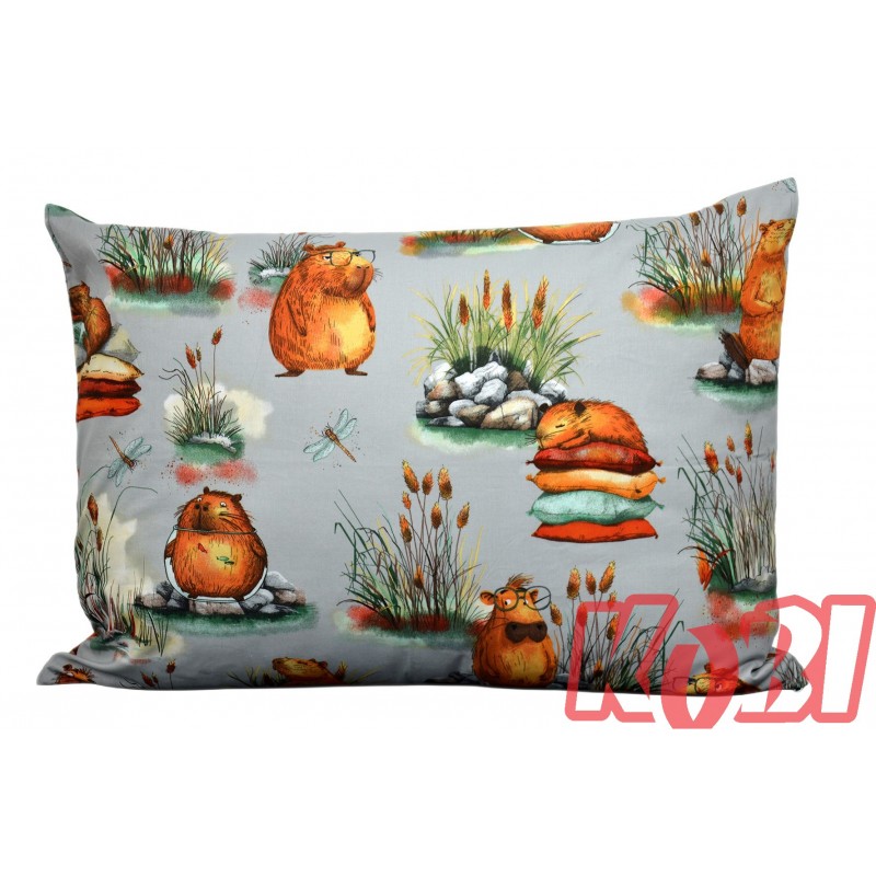 Poszewka bawełniana rozmiar 50x70 Kapibara szare tło 3521 Kobi