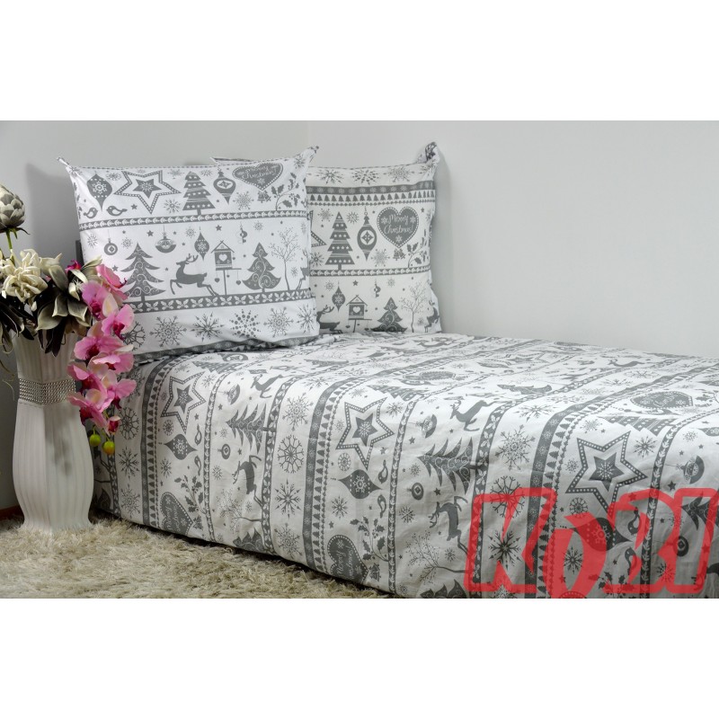 Pościel bawełna 100% rozmiar 160x200 świąteczna renifery szare pasy 1790 Kobi