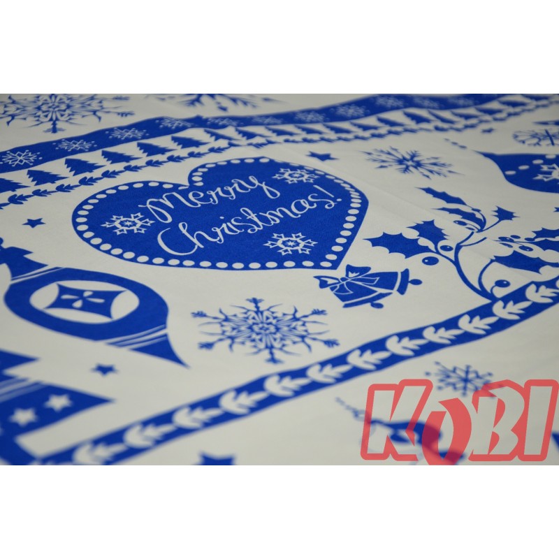 Pościel bawełna 100% rozmiar 160x200 świąteczna renifery niebieskie pasy 3524 Kobi