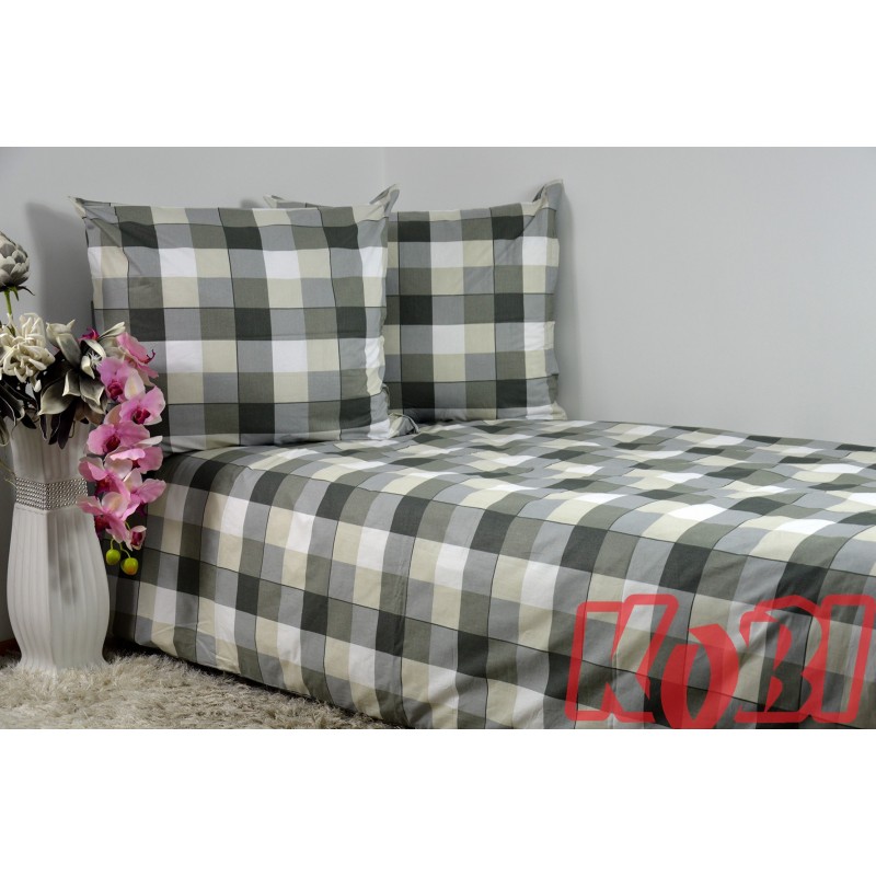 Pościel bawełna 100% rozmiar 160x200 krata szare cappuccino 3534 Kobi