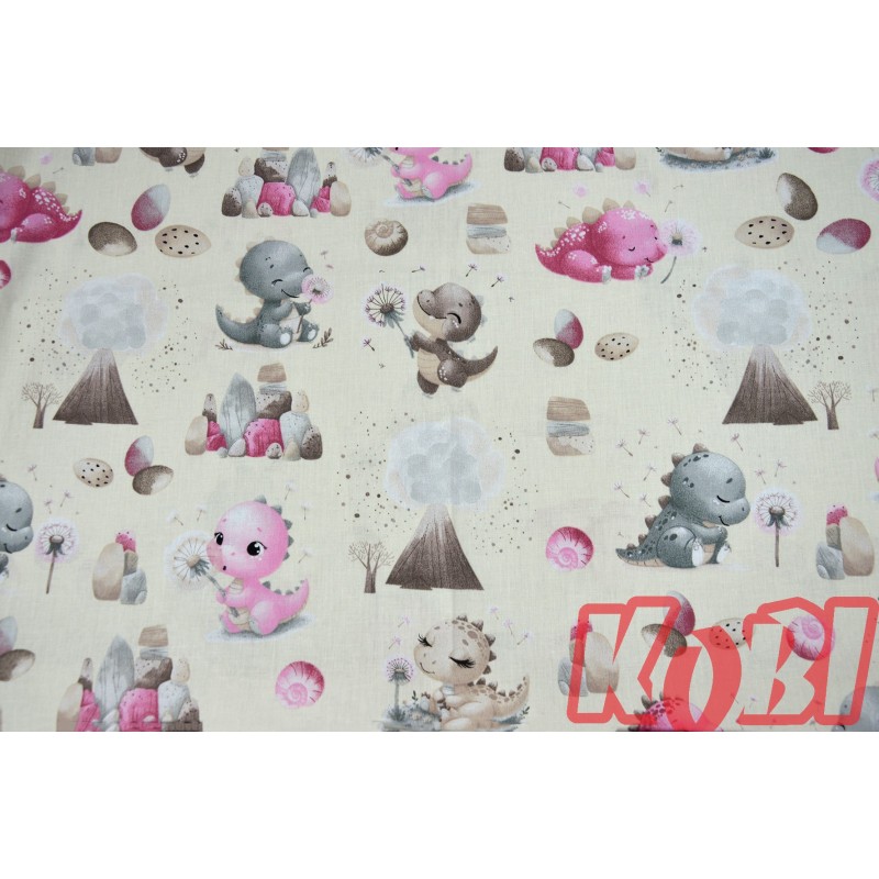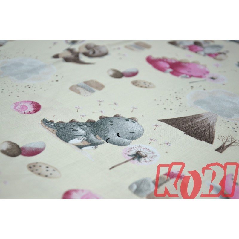 Pościel dziecięca 100% bawełna rozmiar 90x120 małe dinozaury tło ecru D90
