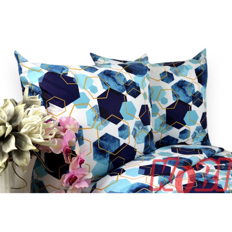 Pościel flanela rozmiar 220x200 niebieskie pięciokąty 3212 Kobi