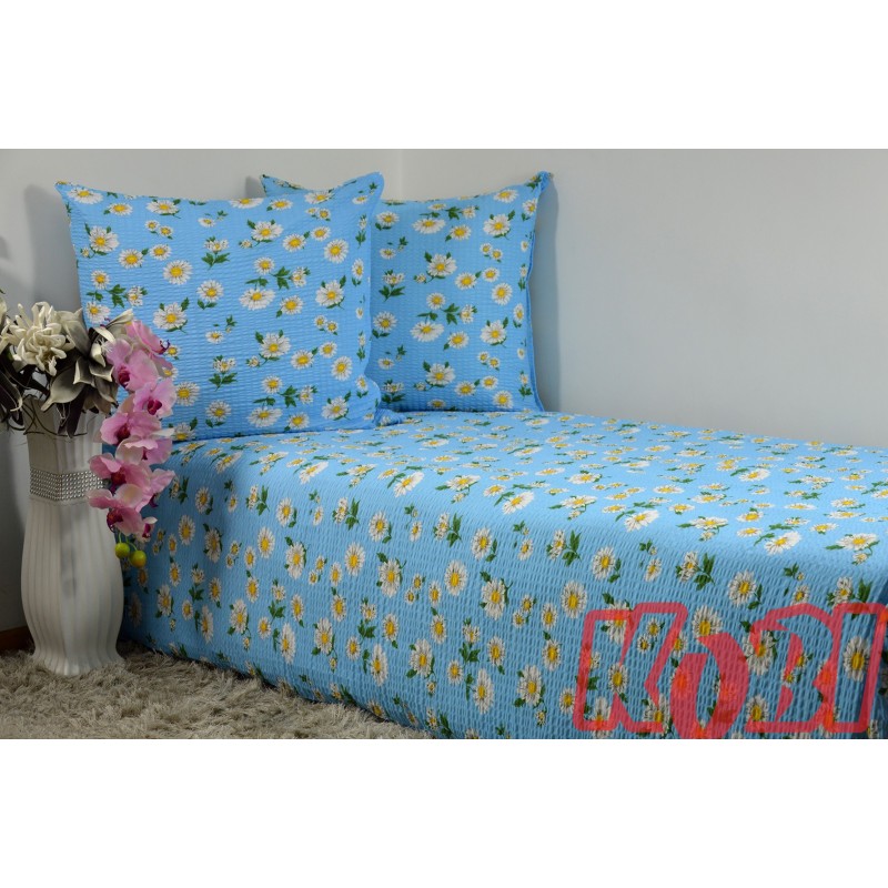 Pościel z kory rozmiar 160x200 Stokrotki niebieskie tło 0876 KOBI