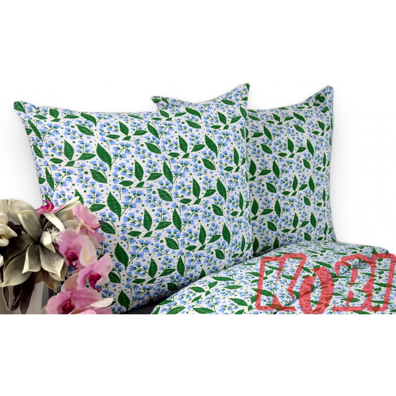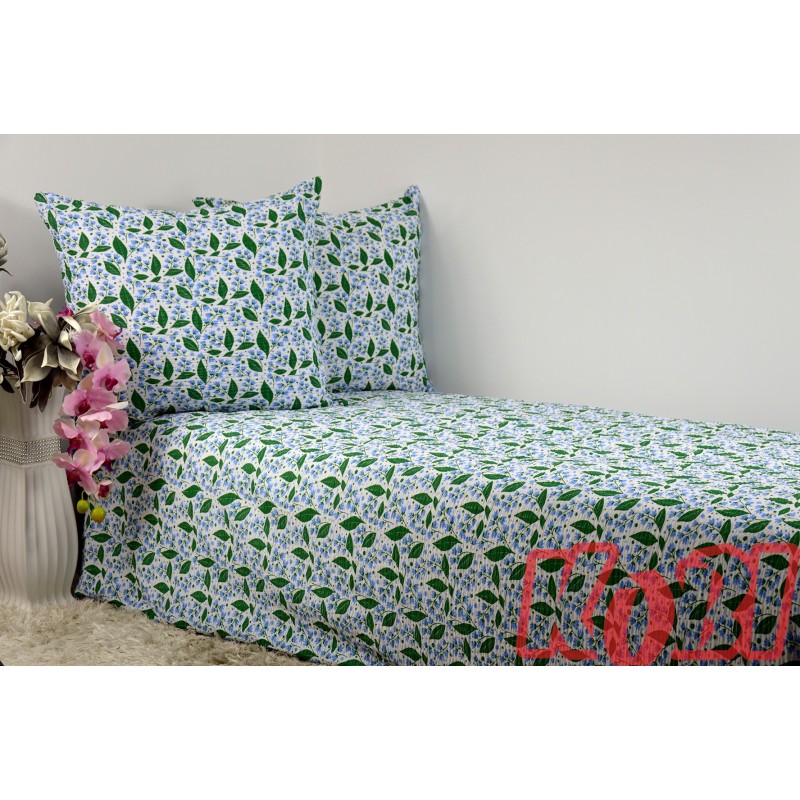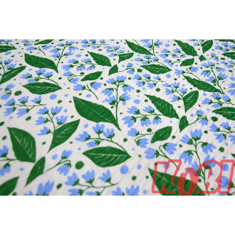 Pościel z kory rozmiar 160x200 Zielone listki niebieskie kwiatki 3528 Kobi